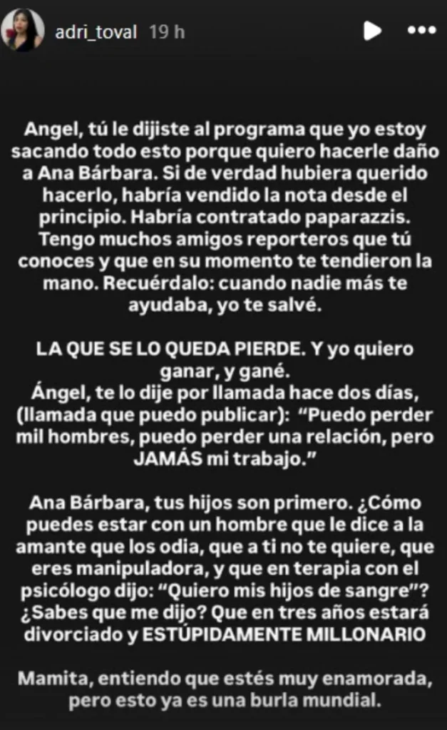 ¿Qué mensaje envió Adriana Toval a Ana Bárbara?